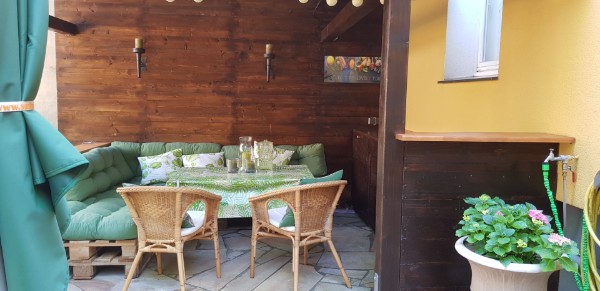 Wir haben für Ihre Nutzung einen wunderschönen Innenhof, mit Sitz und Grillecke. Eine kleine Küche zum Spülen und Getränkekühlschrank sind auch vorhanden. Da im gesamtem Haus Rauchverbot gilt, bietet es sich hier im geschützen Freien die Gelegenheit zum Rauchen, Grillen oder einfach Verweilen.